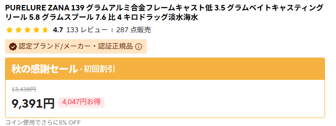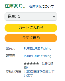 販売元、出荷元がPURELURE Fishingとなっているので、正規品をメーカーが直販売しているぽい。