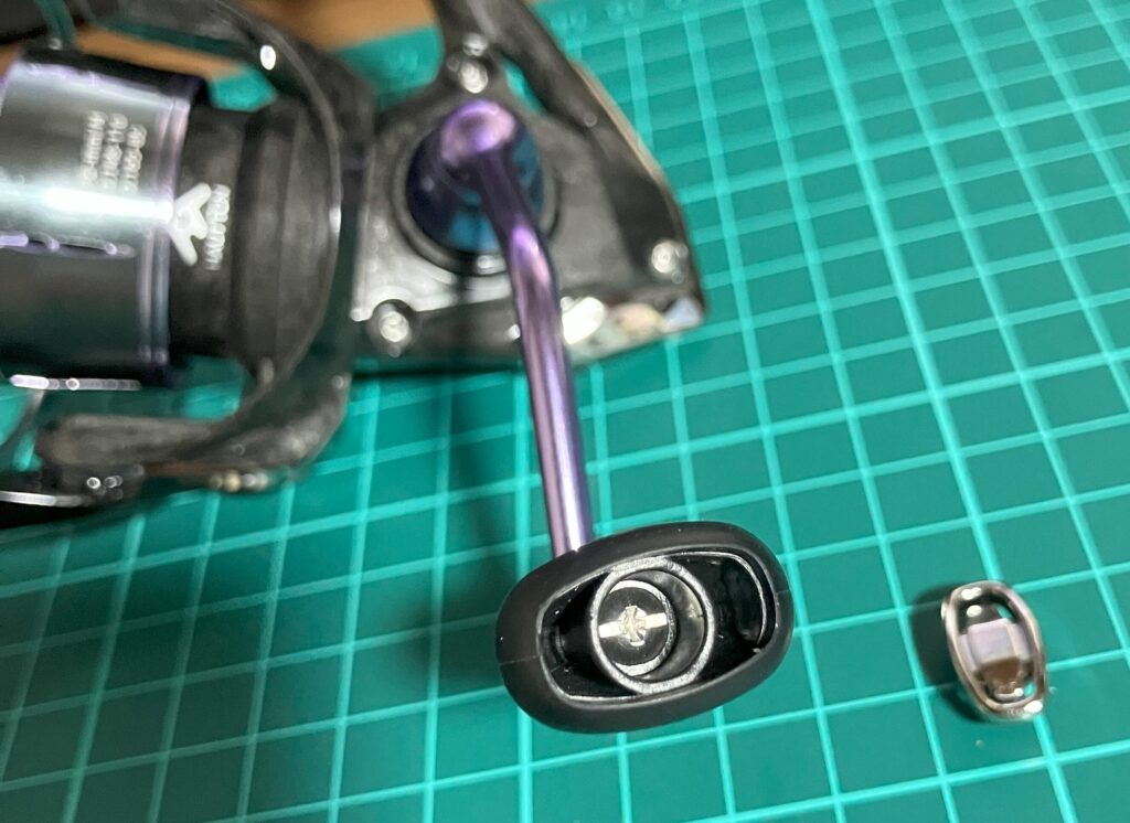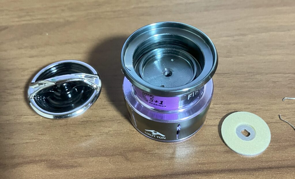 ハンドルノブを分解すると、ベアリングが追加できるタイプとなっている。